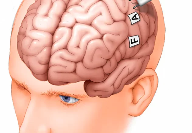 الجراحة هنا تتم باستخدام التقنية ثلاثية الأبعاد، و تجرى هذه الجراحة تحت تأثير المهدئات، وليس تحت تأثير التخدير، لأن المريض لابد أن يكون مستيقظًا، ويبدأ الطبيب بإزالة جزء من الجمجمة، حتى يستطيع الوصول إلى عمق أكبر من الدماغ.